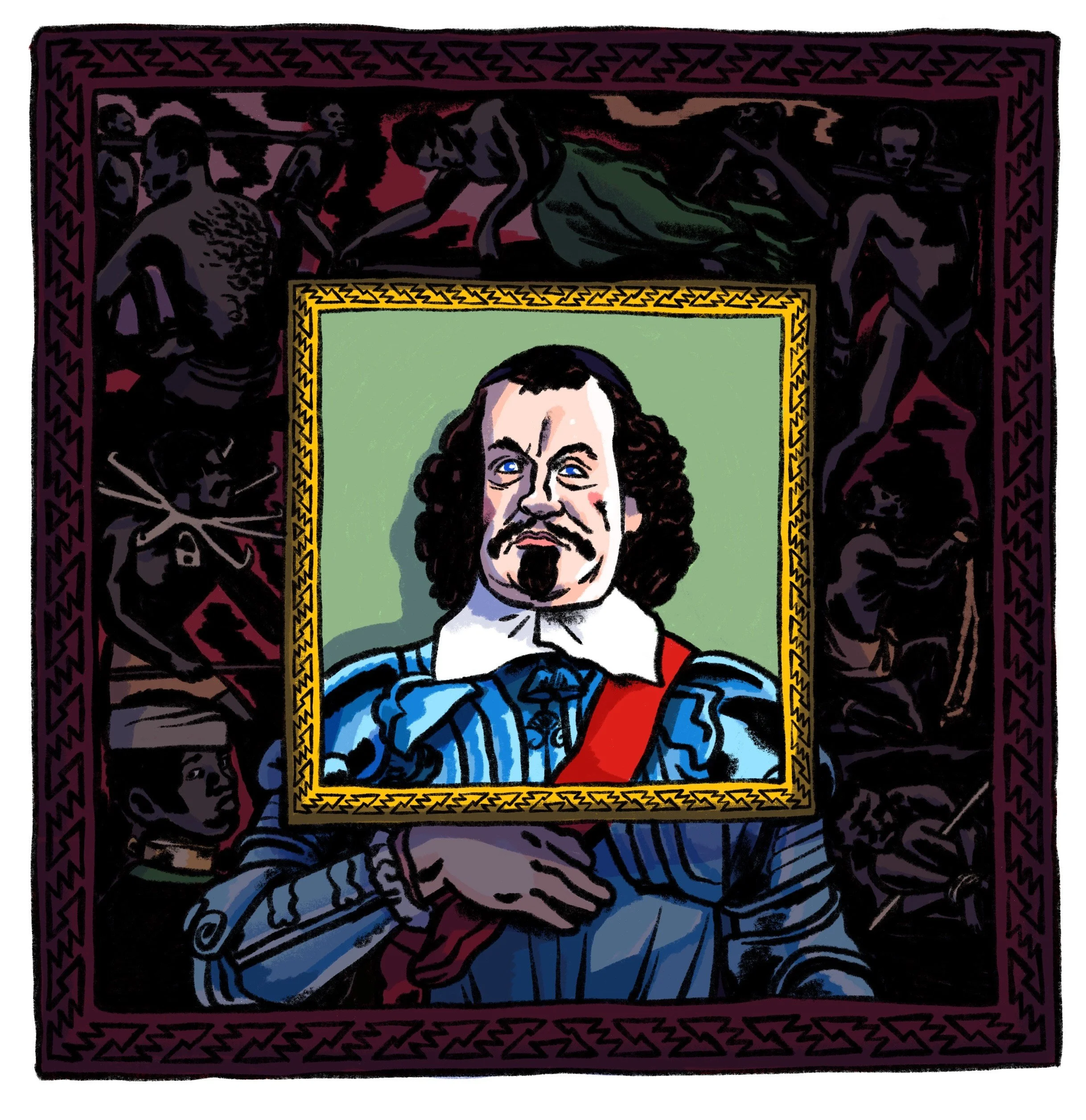 Editorial illustration for Holland Magazine on the lack of documented studies and experiences of enslaved people and their descendants in the Netherlands.