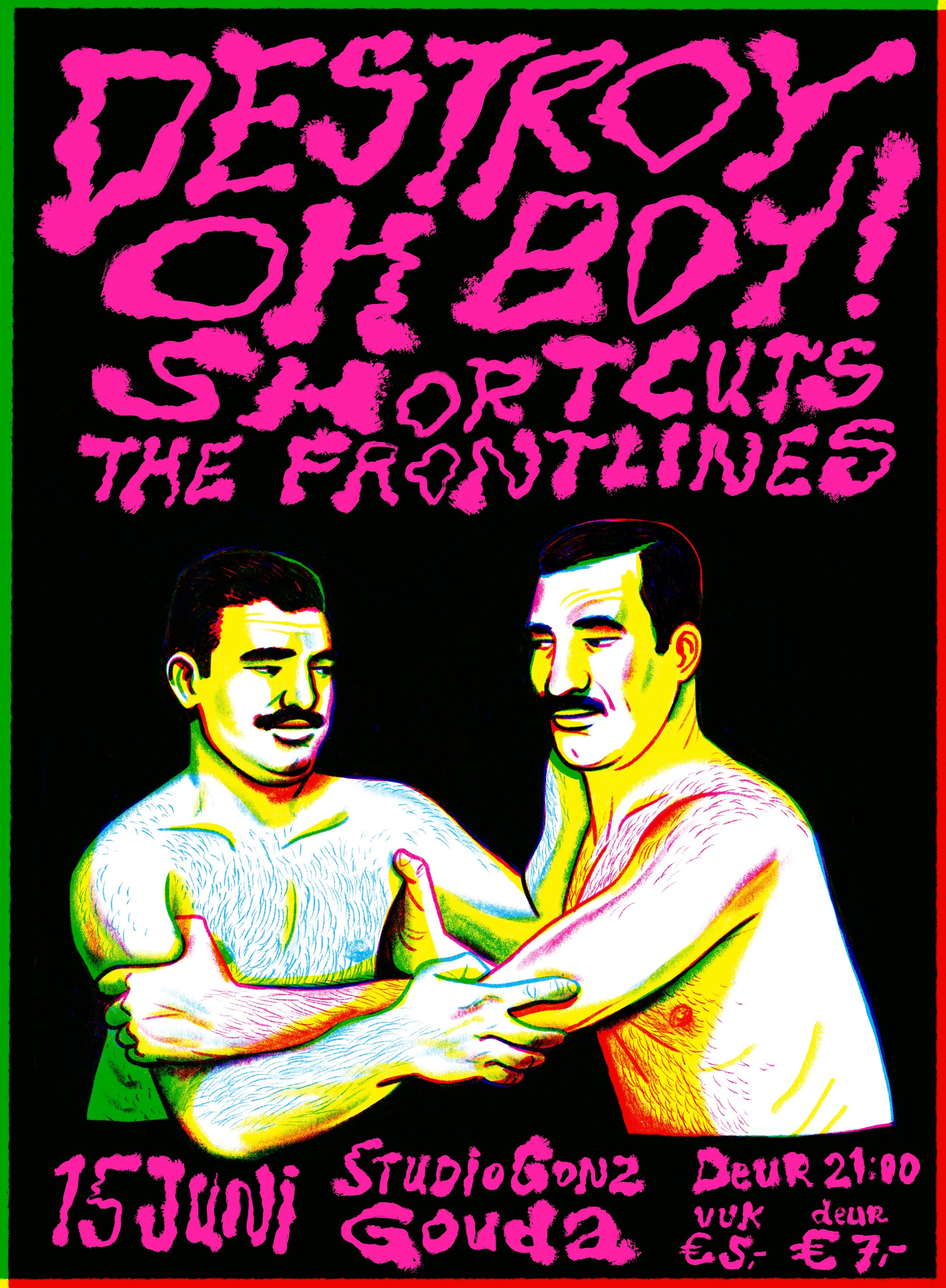 Poster for a Destroy Oh Boy show in three separate colour layers.